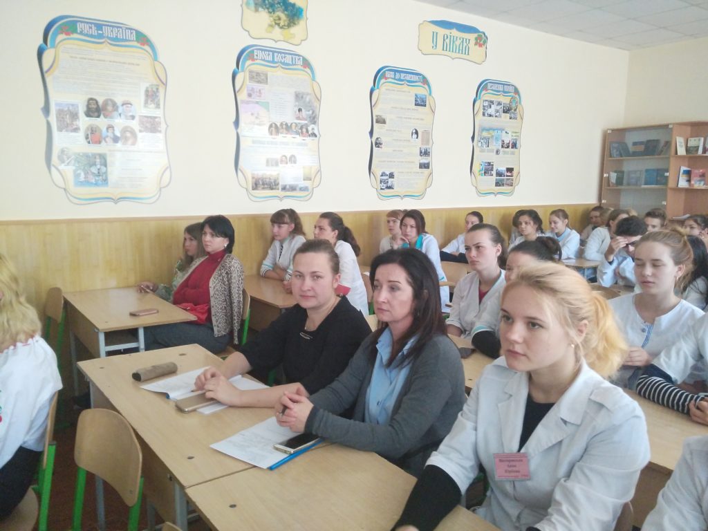 Саме тому 11 жовтня, у медичному коледжі відбулася виховна година, присвячена Дню захисника України, під гаслом: «Відповідь нескореного народу». Мета проведення заходу – це формування патріотично зрілої особистості, виховання української молоді в дусі військових традицій українського народу, військово-професійної орієнтації молоді, розширення і поглиблення національно-громадських та військово-патріотичних уявлень і знань.