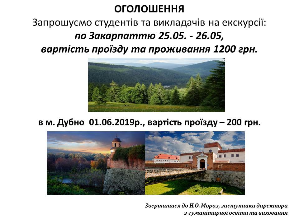Запрошуємо викладачів та студентів на екскурсії 10.05.2019 Якщо ви знайшли помилку, будь ласка, виділіть фрагмент тексту та натисніть Ctrl+Enter. Share