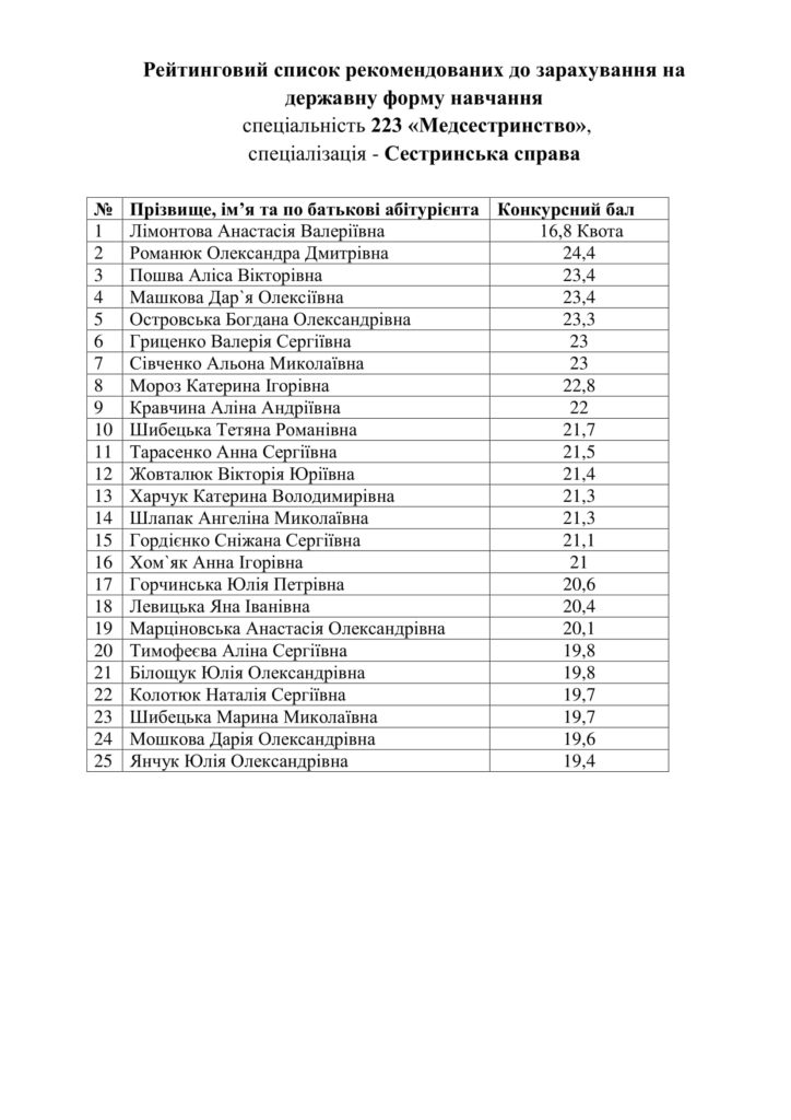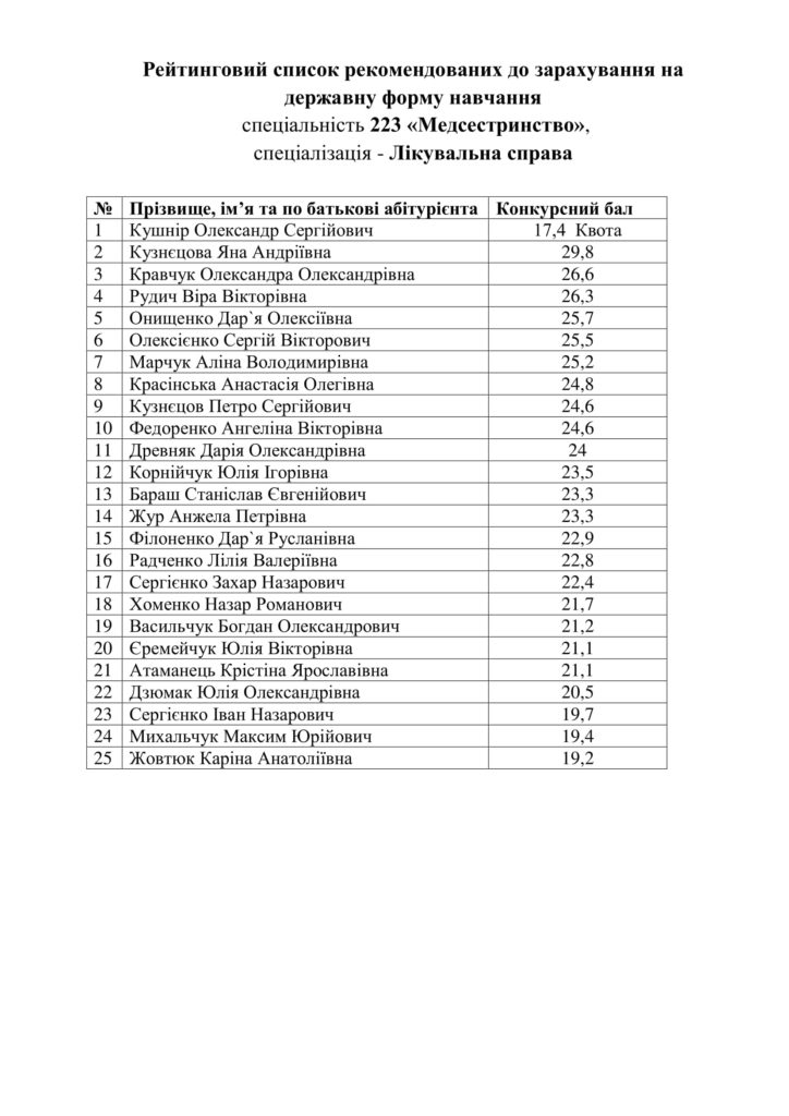 Рейтингові списки рекомендованих до зарахування на державну форму навчання спеціальність 223 «Медсестринство» 22.07.2019 Якщо ви знайшли помилку, будь ласка, виділіть фрагмент тексту та натисніть Ctrl+Enter. Share
