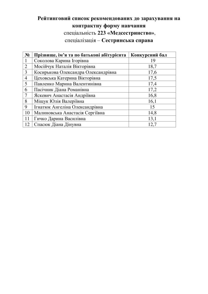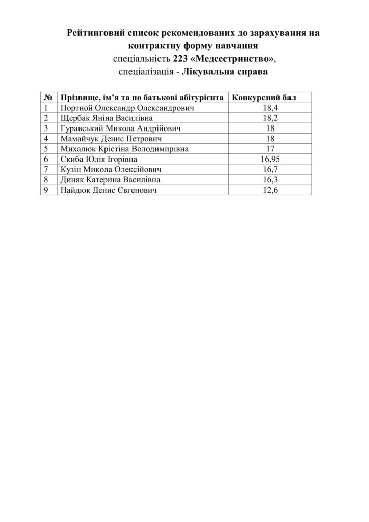 Рейтингові списки рекомендованих до зарахування на контрактну форму навчання спеціальність 223 «Медсестринство» 22.07.2019 Якщо ви знайшли помилку, будь ласка, виділіть фрагмент тексту та натисніть Ctrl+Enter. Share