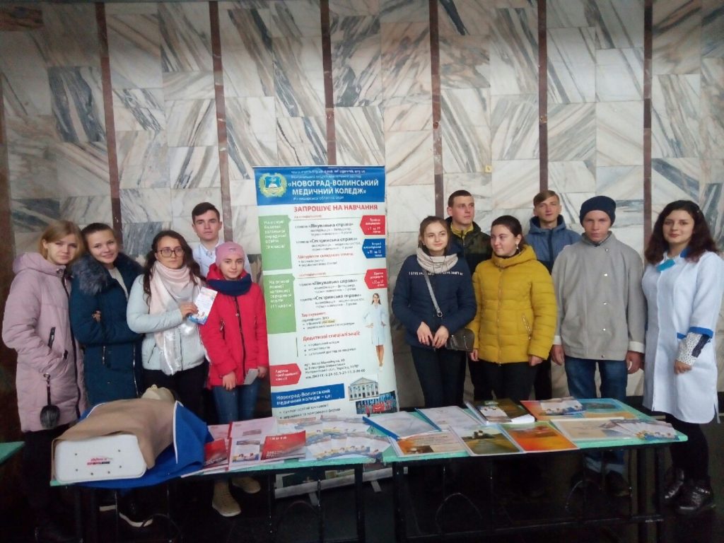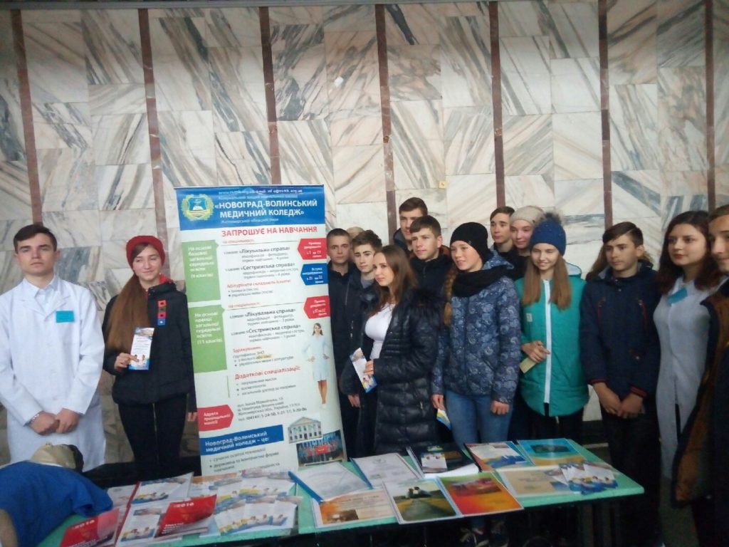 26 листопада для випускників шкіл міста Новограда-Волинського на базі промислово-економічного технікуму відбувся міський профорієнтаційний захід. Студенти медичного коледжу Руслан Ничипорчук, Микола Савич, Аліна Марчук, Сергій Олексієнко на чолі з викладачем Володимиром Бистрицьким активно запрошували школярів на навчання, роздавали буклети, демонстрували на муляжах методику надання першої долікарської допомоги, цікаво розповідали про навчальний заклад, професію медичного працівника. Також запросили школярів міста долучитися до акції «Врятуймо життя Олі!» на підтримку онкохворої Олі Дзядович, яка проживає в с. Бараші Ємільчинського р-ну.