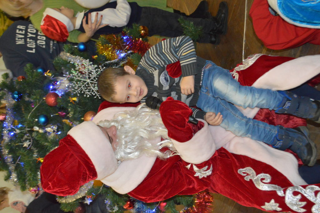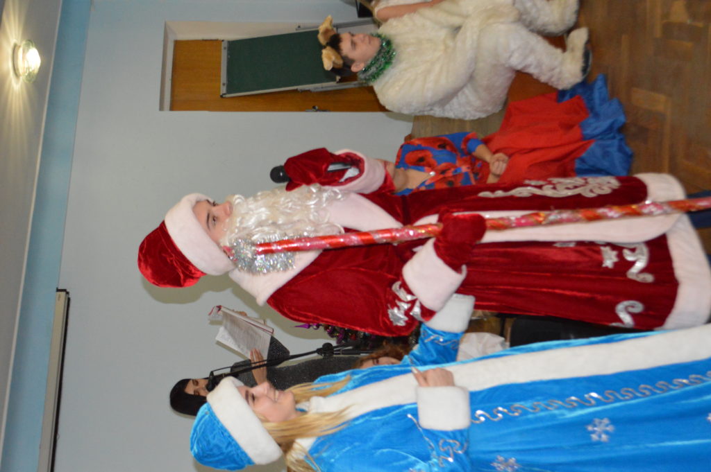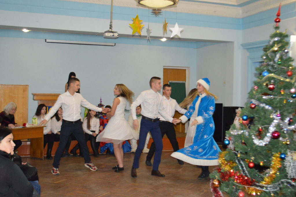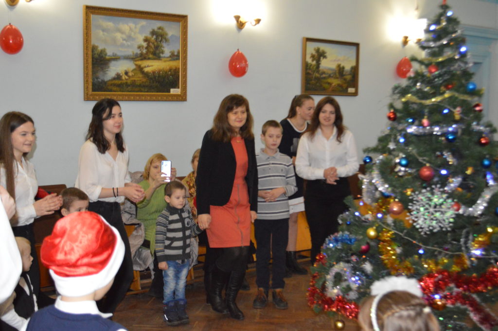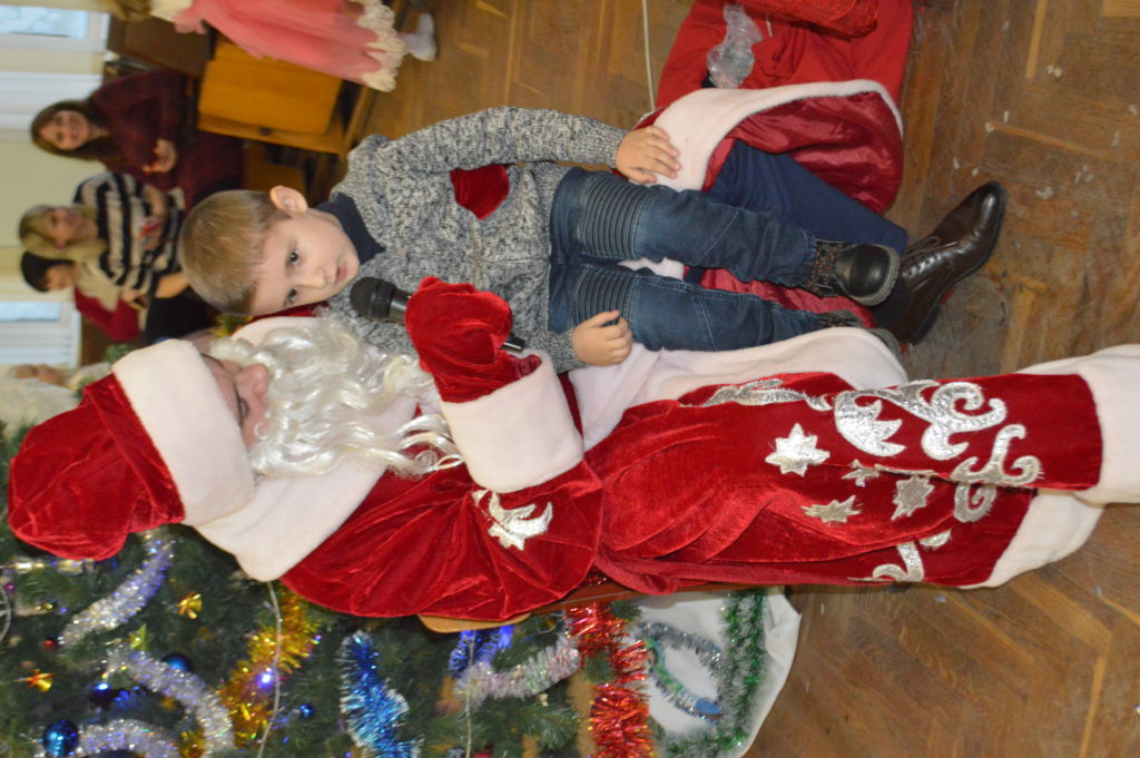 Біля головної красуні цього свята – новорічної ялинки, діточки водити святкові хороводи, танцювали запальний танок та виконували різні вправи на швидкість. Сюрпризом для дітей був вихід Баби Яги, яка привітала всіх присутніх, створивши веселу та радісну атмосферу свята. Кіт у кросівках та Білий полярний ведмідь з задоволенням допомагали маленьким учасникам виконувати вказівки Діда Мороза та Снігурочки. Наостанок, всі бажаючі розповіли новорічні віршики та заспівали пісні, за що отримали солодкі призи та сувеніри-мишенята – символ наступаючого року. Свято було теплим, затишним і залишило у дітлахів приємні спогади та віру у казку.