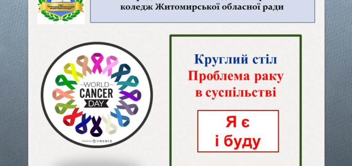 До Всесвітнього дня боротьби з раком 05.02.2021 року в Новоград- Волинському медичному фаховому коледжі проведено круглий стіл на тему: «Проблеми раку в суспільстві» . Участь в круглому столі прийняли викладачі та студенти 4-го курсу...