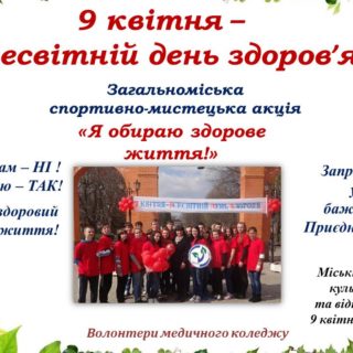 З нагоди Всесвітнього Дня здоров’я 10 квітня у медичному коледжі був проведений «Спортивно-інтелектуальний КВЕСТ» серед студентів І і ІІ курсів відділень «Лікувальна справа» та «Сестринська справа». У нашій свідомості вітає одна дуже проста думка,...