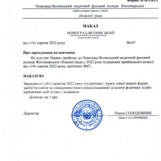 Новоград-Волинський медичний фаховий коледж вітає всіх студентів з Днем Знань! З цієї нагоди в закладі 31 серпня відбулася Посвята першокурсників в студенти. Цьогоріч студентське братство коледжу поповнило 107 першокурсників. Цей день завжди особливо урочистий...