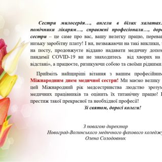 Декілька порад від соціально-психологічної служби Новоград-Волинського медичного фахового коледжу ШАНОВІН СТУДЕНТИ! Під час епідемії дотримуйтесь основних запобіжних заходів для захисту від нової коронавірусної інфекції. Знання про те, як правильно поводитися у критичній ситуації, знижує...