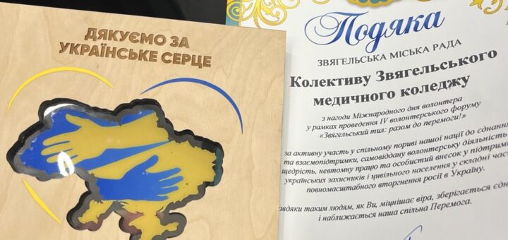 2 грудня 2025 року, у межах ІІ Волонтерського форуму «Звягельський тил: разом до перемоги!», Звягельський медичний фаховий коледж отримав почесну подяку від Звягельської міської ради – за активну громадянську позицію, самовіддану працю та підтримку...