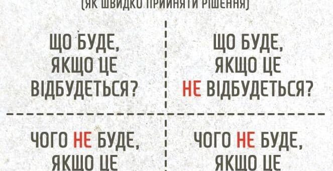 Що таке квадрат Декарта?Це проста техніка прийняття рішень. Її суть полягає в тому, що потрібно розглянути проблему/ситуацію, відповівши на такі 4 питання: Що буде, якщо це станеться? Що я отримаю, плюси від цього. Що...